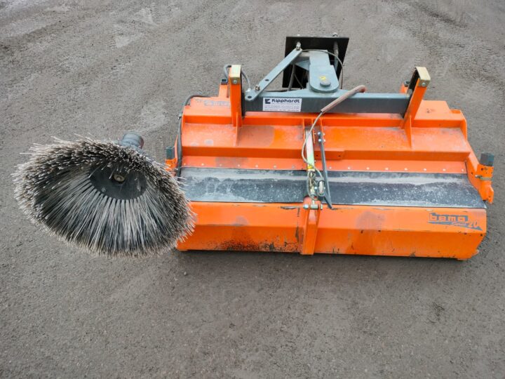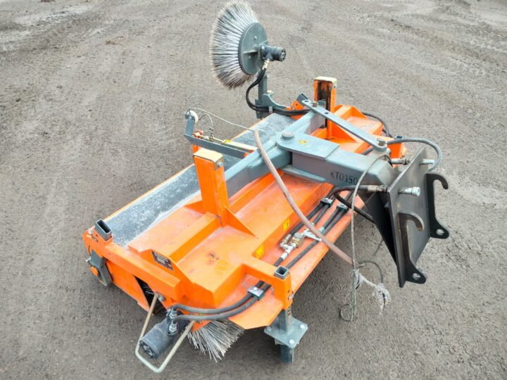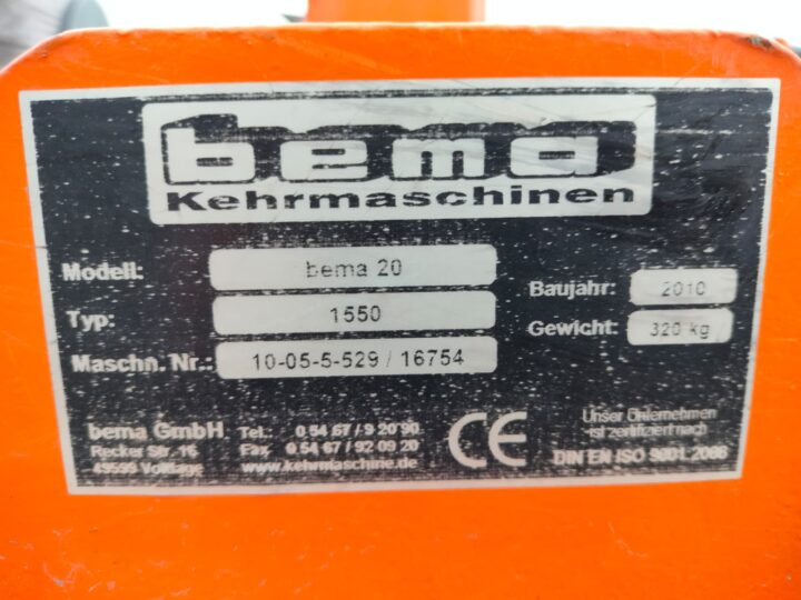 Hyväkuntoinen Bema 20 1550 keräävä harjalaite sivuharjalla sekä käsitoimisella roskaluukulla.