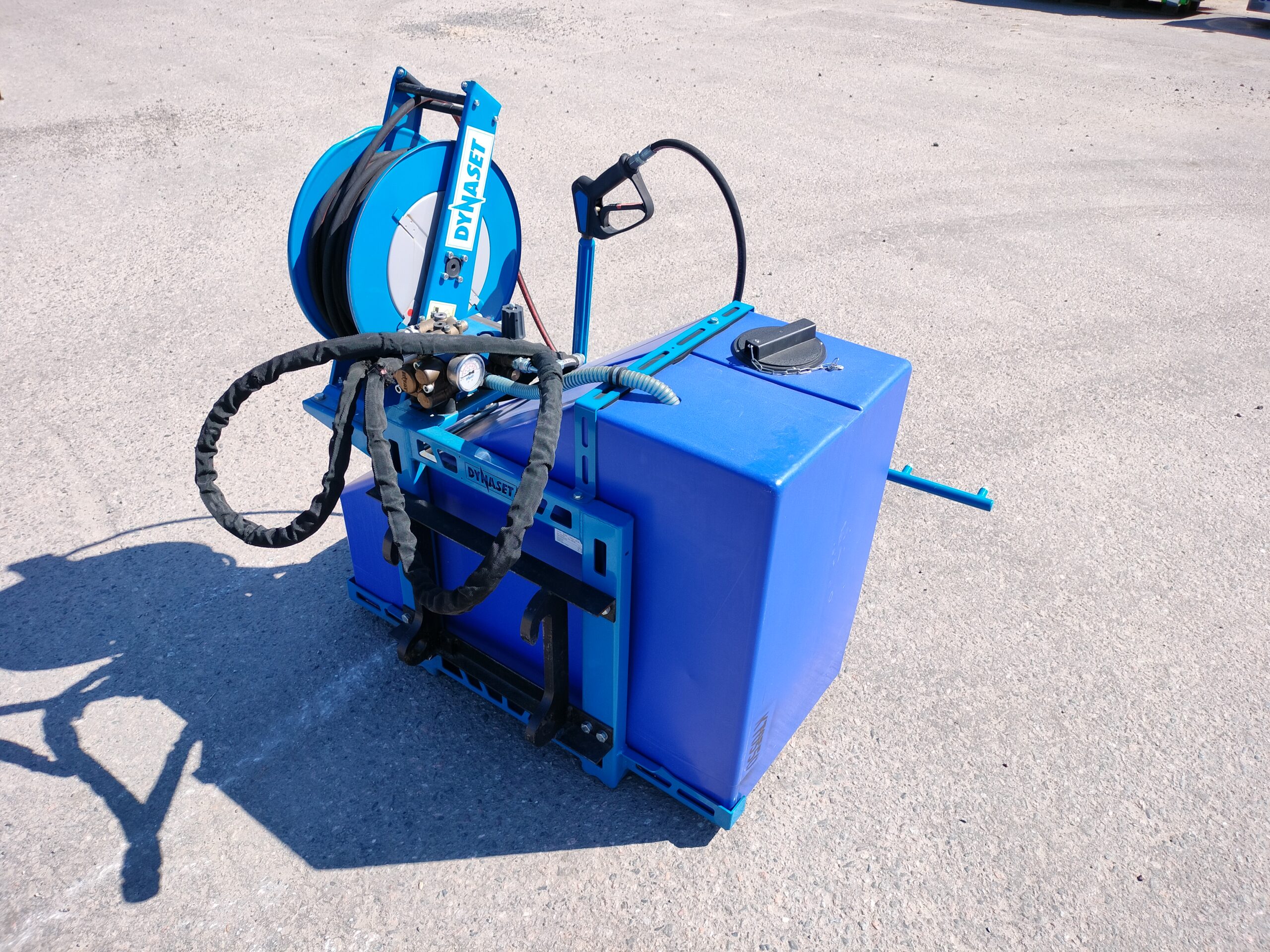 Lähes uudenveroinen Dynaset kadunpesulaite pienempiin kuoräkuormaajiin.