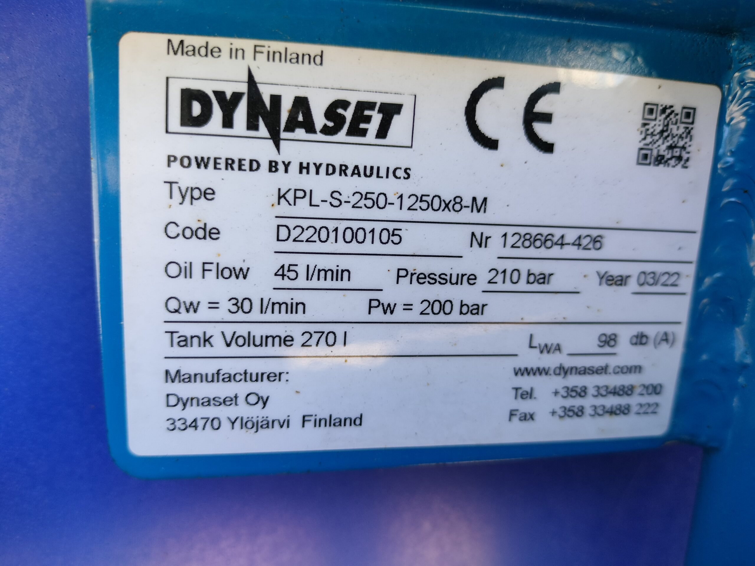 Hydraulivirtaus min. l/min: 45