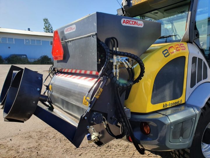 Kramer 8085 sopiva hiekoitin on varustettu kahdella heittävällä lautasella. Sitä pystytään käyttämään joko heitolla tai perinteisellä ”matto” levityksellä. Kramer 8085 varustellaan puomiin tulevalla 300kg vastapainolla.