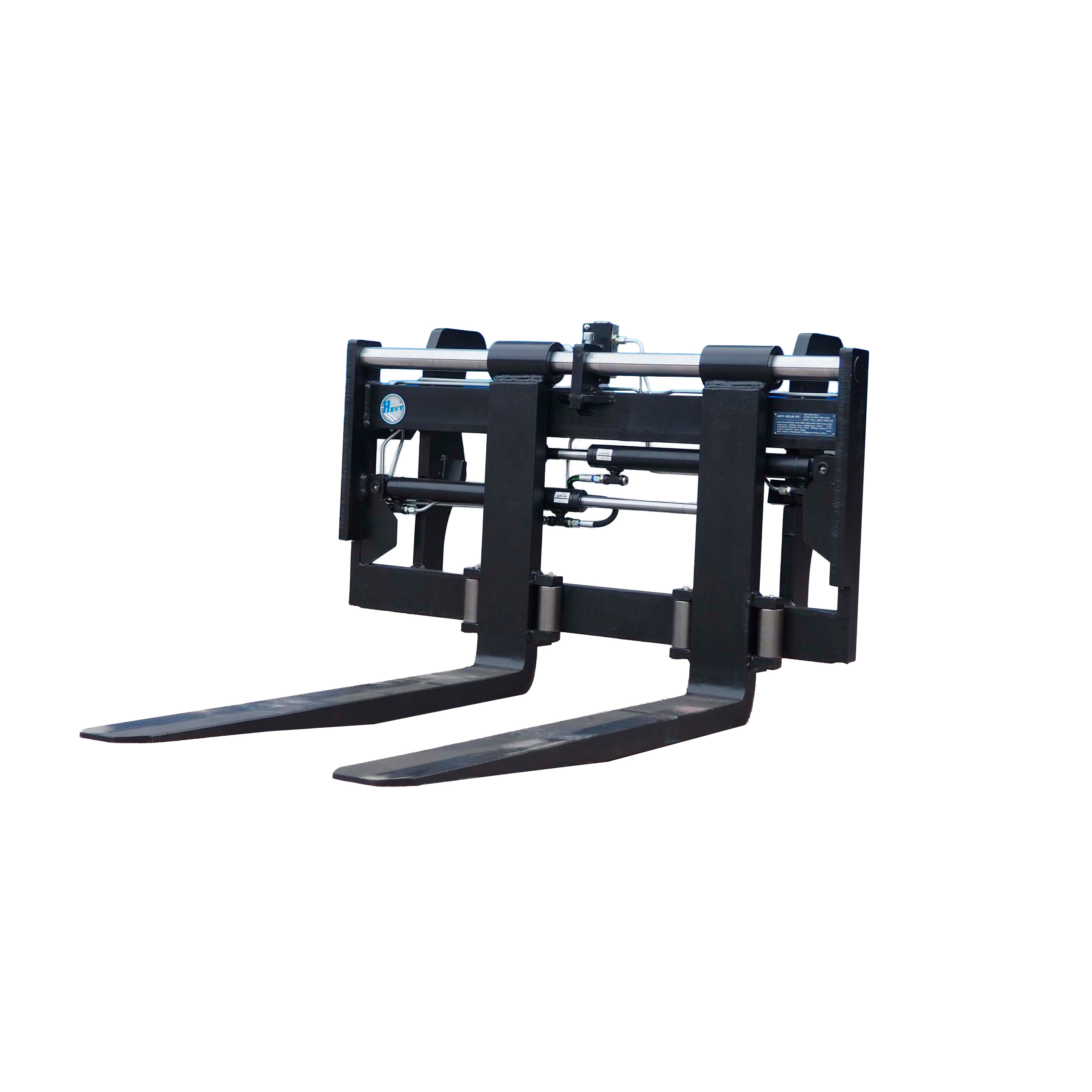Hydrauliset trukkipiikit 1200mm piikeillä ja Kramer 380 sovitteella. Piikeissä hydraulinen levitys/kavennus sekä sivuttaissiirto (paikoitus).