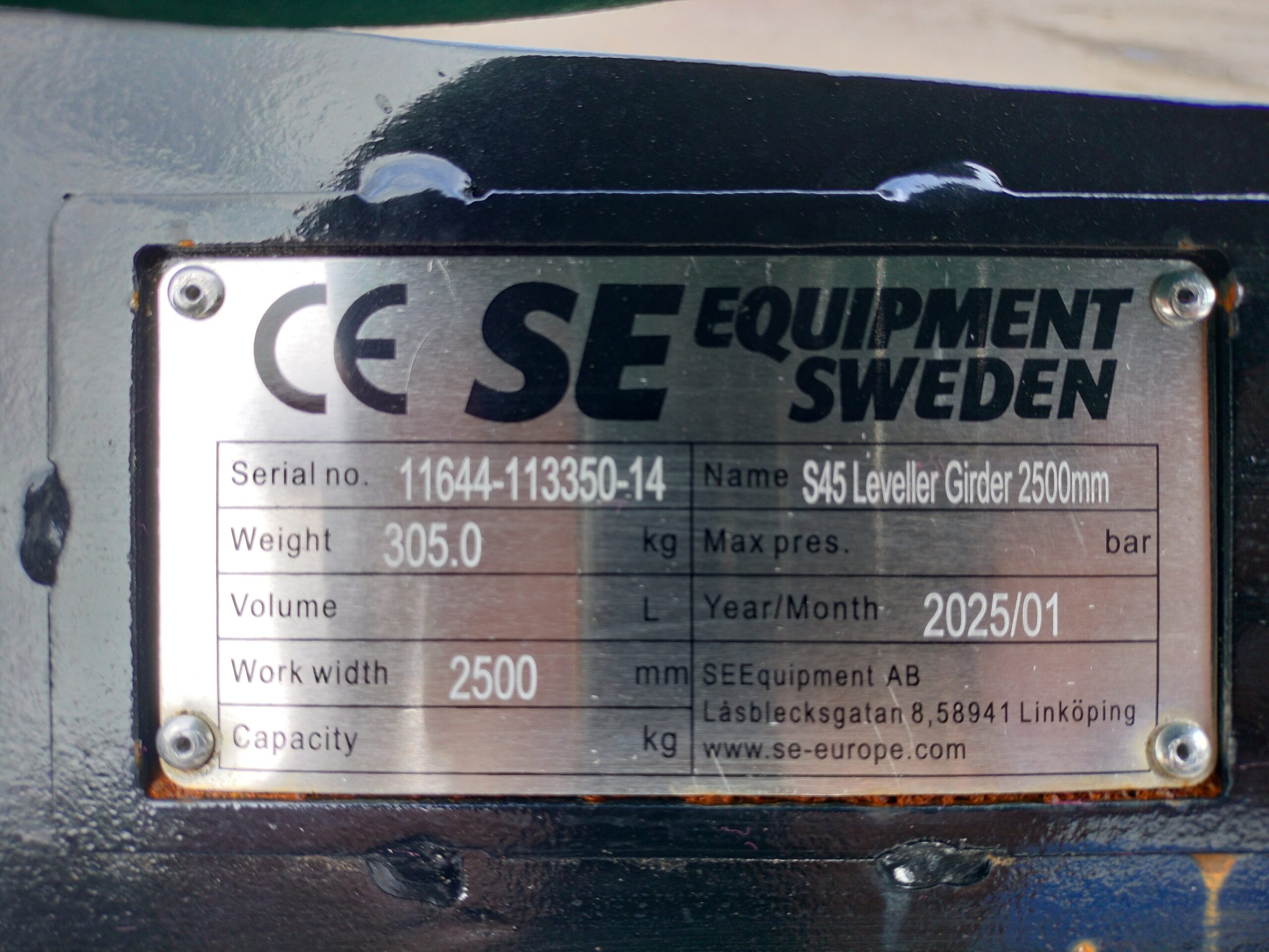 Kaivinkoneen 2,mm tasauspalkki S45 sovitteella, rullan halkaisija 219mm. Rullan leveys 2300mm, kokonaisleveys 2500mm.
